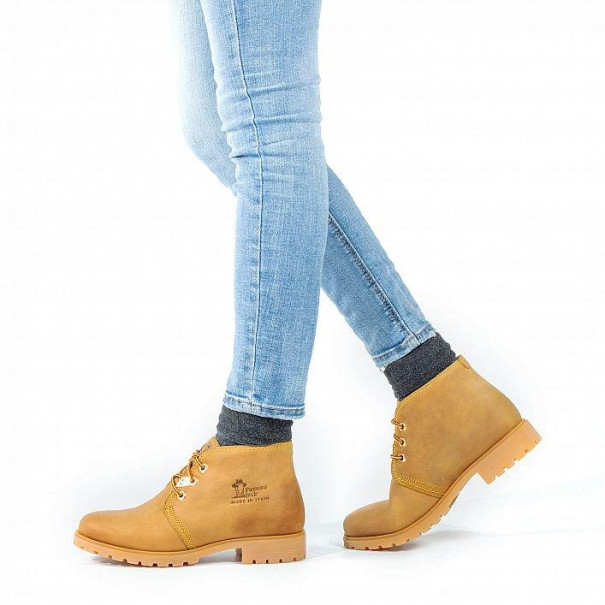 Botin mujer Panama Jack en color camel. Cuenta con tecnologia waterproof y forro interior de piel. Suela de goma resistente y adherente. Un clásico desde 1989. Hecho en España.