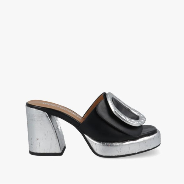 Tacón Alberta en negro y plata